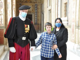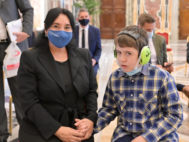 Mit diesen Worten begrüßte Papst Franziskus 8 Kinder des Autismuszentrums Sonnenschein, deren Eltern, Prim. Dr. Sonja Gobara, MSc und MitarbeiterInnen des Autismuszentrums Sonnenschein bei der Privataudienz am 21. September 2020 in Rom.